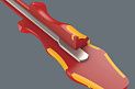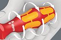 Торцевая отвёртка Wera VDE с многокомпонентной ручкой Kraftform для работы в быстром и щадящем режиме: твердые зоны ручки для высокой скорости работы, в то время как мягкие зоны ручки обеспечивают передачу больших моментов силы. Поштучная проверка под напряжением 10000 В для безопасной работы на оборудовании с максимально допустимым напряжением 1000 В. Шестигранный край ручки для защиты от перекатывания отвёртки на рабочем месте.